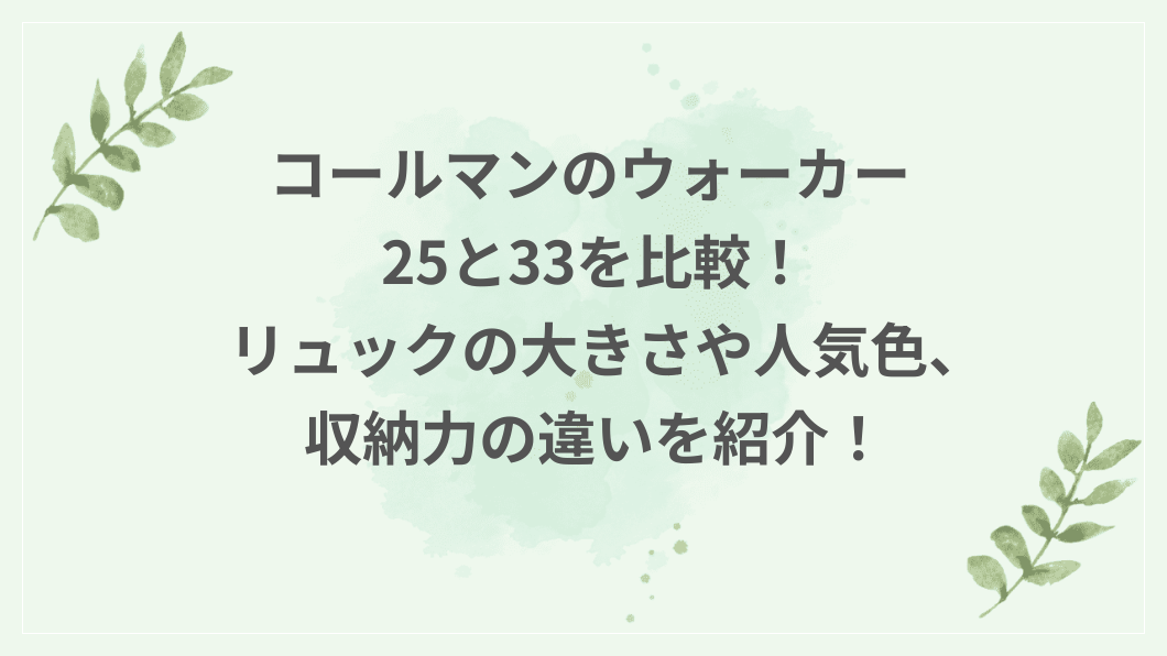 この記事では、「コールマンのウォーカー25と33の比較」をテーマに、サイズや容量、デザインの違いから、どちらが自分に合うのかをわかりやすく解説しています。